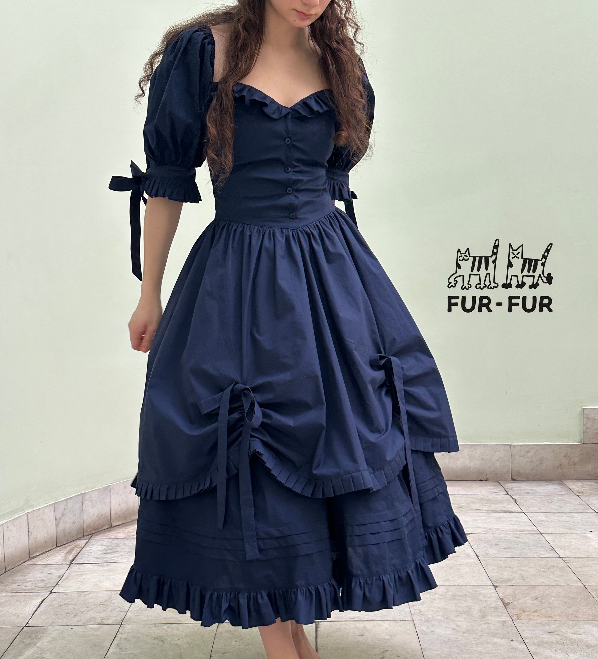 Karamelka double skirt dress with ruffles and bows